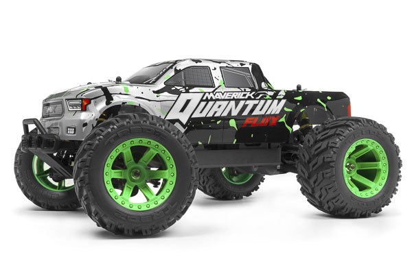 The Maverick Quantum FLUX is a rugged 4WD Shaft-Driven, monster truck with a high ground clearance chassis design and high ride height suspension set up for clambering over anything in its way! With independent Double Wishbone Suspension, Oil Filled Adjustable Coilover Shocks and Tough Metal 4-Gear Differentials Front & Rear, no amount of dirt or jumps will stand in your way!